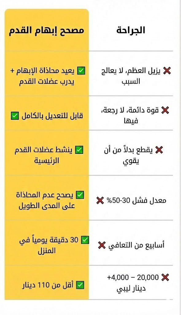 فترة التعافي؟ توقع قضاء 6-12 أسبوعاً دون القدرة على المشي، واستخدام العكازات، مع خطر عودة المشكلة إذا لم تلتزم بارتداء الأحذية الطبية مدى الحياة.